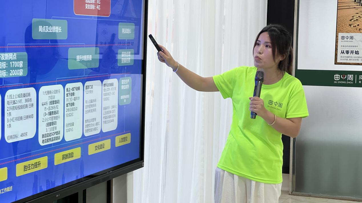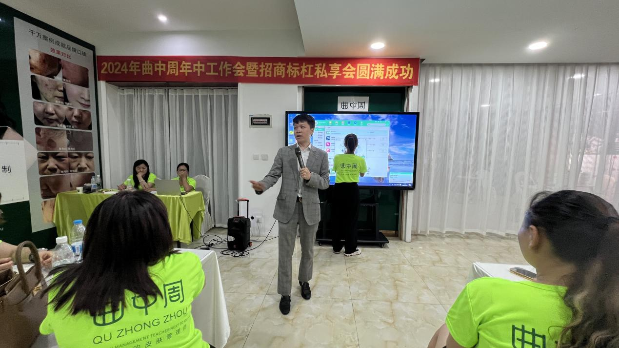 各省代理进行上半年总结及下半年规划,画面闪过的每一个来之不易的成果,无不让人动容。业绩的大幅提升、管理的细微之处带给我们回味着曲中周一年又一年的成长,相信跟随曲中周多年的家人们会有更深刻的感受。而这些感受更给予了我们进步的信心和力量,展望2024下半年,曲董表示“听党话,跟党走,踏实干!”鼓舞在场所有家人们携手并肩,同频各代理,为收获更美好的下半年而努力!正如骆总在会上所说,要有决心,有底气,才能在日益激烈的市场竞争中立于不败之地。