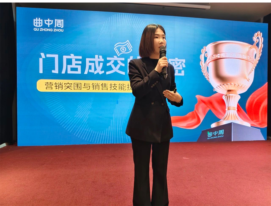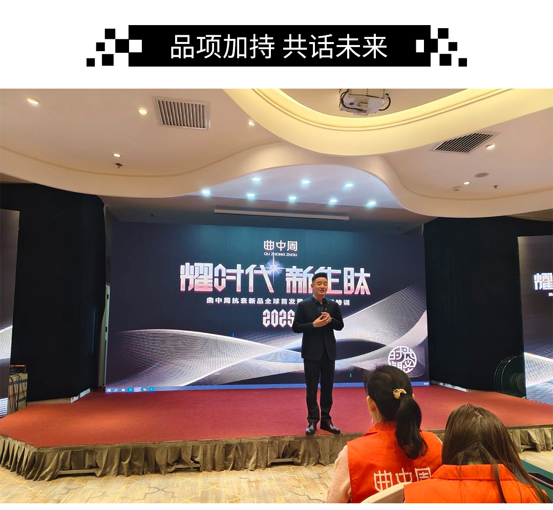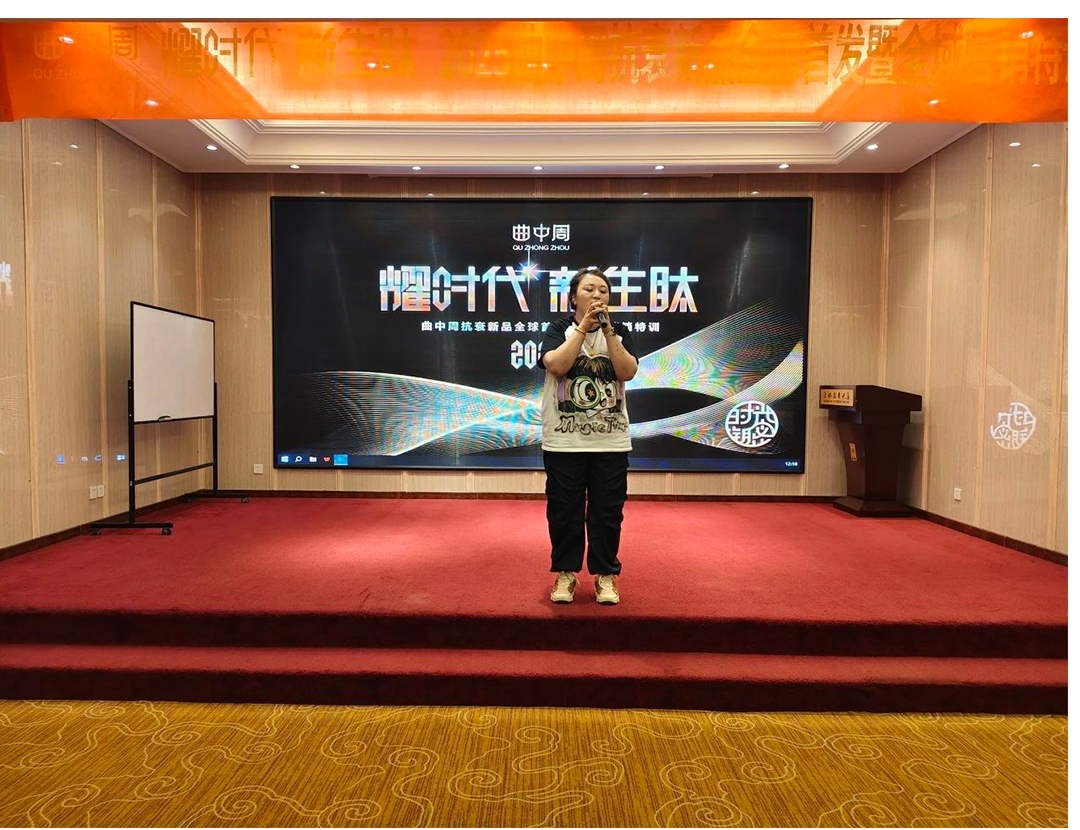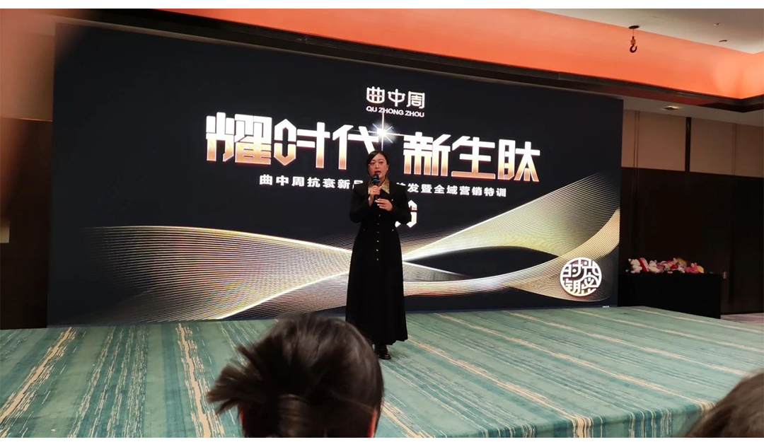 曲中周品牌运营总经理骆宏伟骆总在会上发表开场致辞。首先热烈而真挚地欢迎了到会的家人们,感谢大家一直以来对曲中周品牌的支持与信任。骆总表示,正是因为有了各位经销商家人的共同努力,曲中周才能在激烈的市场竞争中不断成长与壮大。他强调,当前市场环境充满挑战,但也蕴藏着巨大的机遇。他鼓励各位经销商家人在接下来的时间里,继续保持拼搏精神,全力以赴冲刺业绩,用努力铸就辉煌,在年终呈上一份熠熠生辉的答卷 。