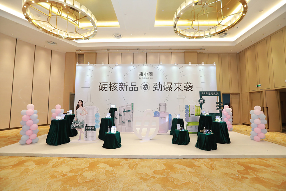 万众瞩目的新产品,主打【修护、美白、祛斑、抗敏】,曲中周素颜水、祛斑系列、护颜系列,劲爆来袭在发布会现场精彩亮相。