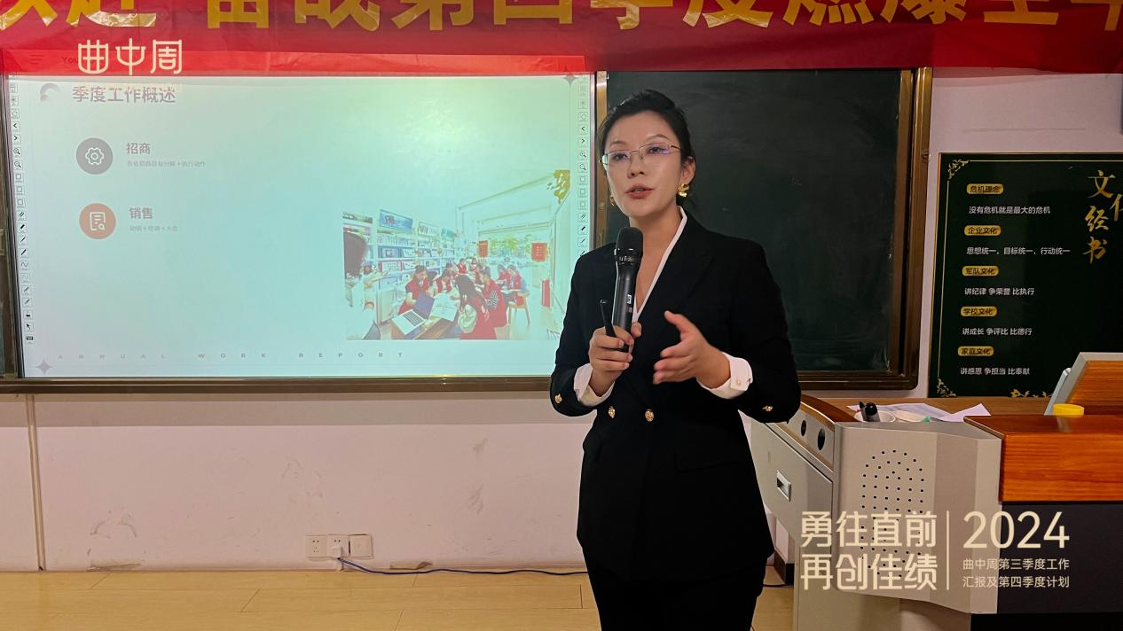 会议尾声,骆总发表总结。他强调,没有一份收获是偶然的,所有结果都是团队集思广益的成果。回顾过去,我们经历了风雨,展望未来,我们满怀信心。曲中周品牌的成长和发展,离不开每一位经销商伙伴的努力,同时也需要品牌内部每位员工的进步。过去的第3季度,我们有失也有得,有苦也有甜,但无论是欢笑还是泪水,都将会是我们每个人弥足珍贵的宝藏。希望在第4季度的工作中,每个人都要打起精神,齐心协力,不辜负经销商家人们的付出,一起铸就更美好的明天!