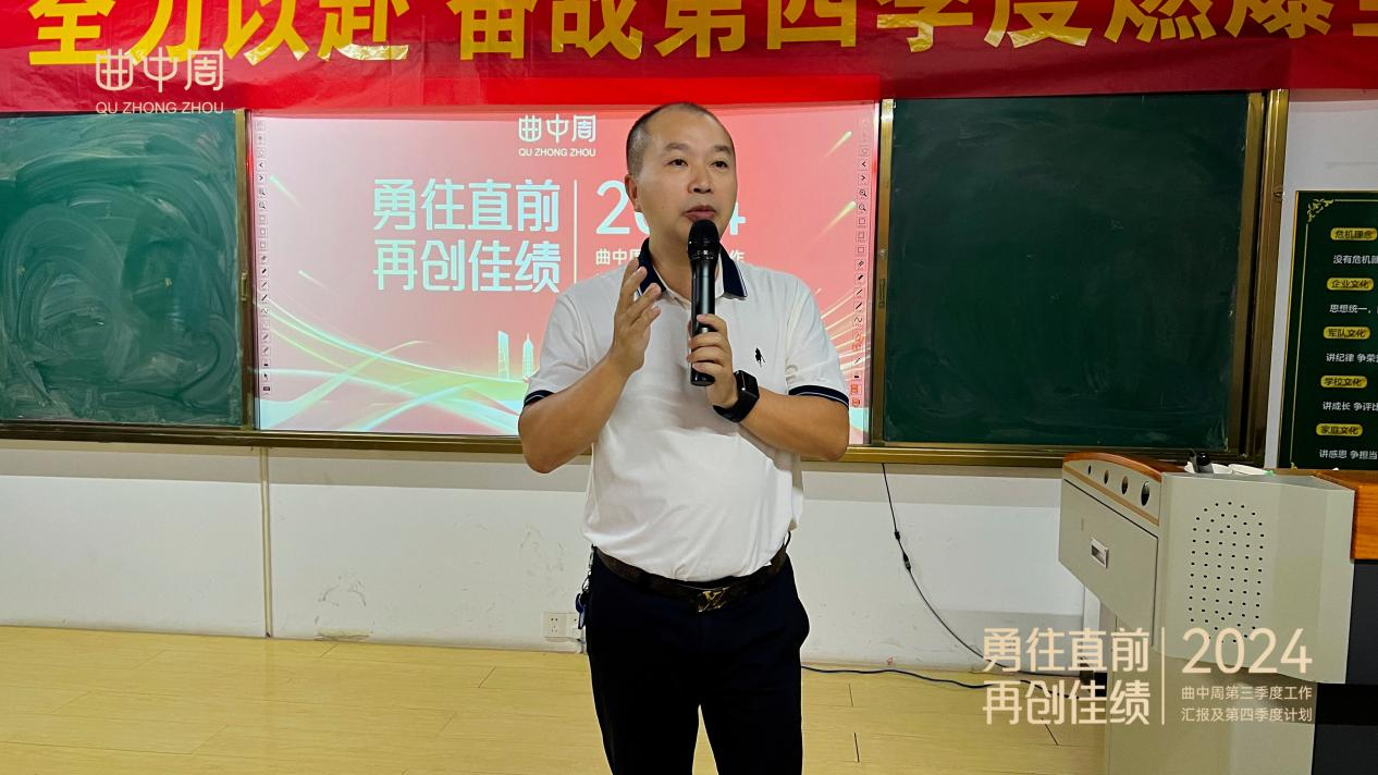 会前,曲中周品牌运营总经理骆宏伟骆总进行开场发言。首先,他对在场的各位家人表示感谢,感谢大家在品牌员工忙碌奔波于市场的时期,能够抽空参加此次会议。骆总相信,通过这次总结会议,大家将对下一阶段的工作有更加清晰的认识,并能更好地服务于经销商。他提到,2024年第3季度的工作繁重且牵涉面广,需要进行大量的对外和对内沟通工作。骆总在会上为大家的付出提出表扬。